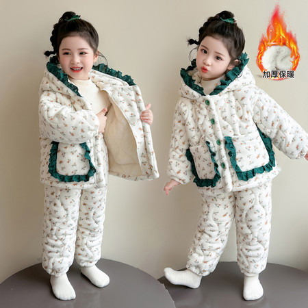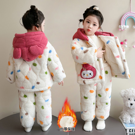 1*7收藏“A042彩点连帽三层加厚睡衣套装”